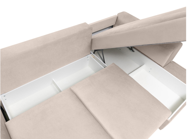 В сложенном виде — это удачная альтернатива односпальной кровати, а в разложенном — просторное спальное место для двоих. В основании расположен независимый пружинный блок, который обеспечивает оптимальную опору для позвоночника. Механизм трансформации простой и надежный, поэтому подходит для ежедневного сна. Два бельевых короба организуют хранение постельного белья, одеял, пледов и прочего текстиля.