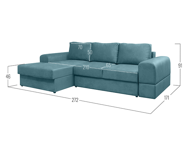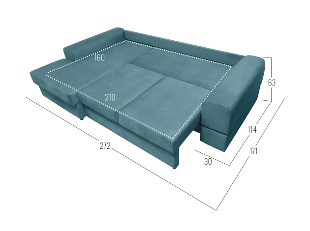 - Посадочное место без подушек (ШхГ): 210 х 90 см.
