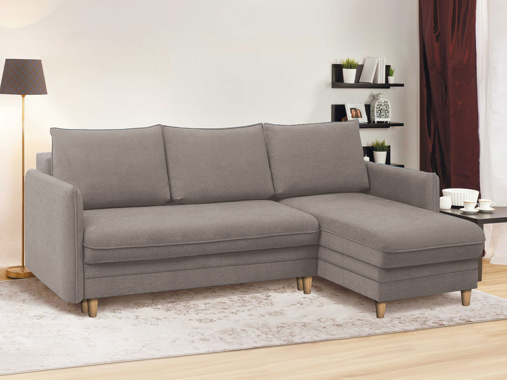 Угловой диван Остин Капучино, велюр Универсальное