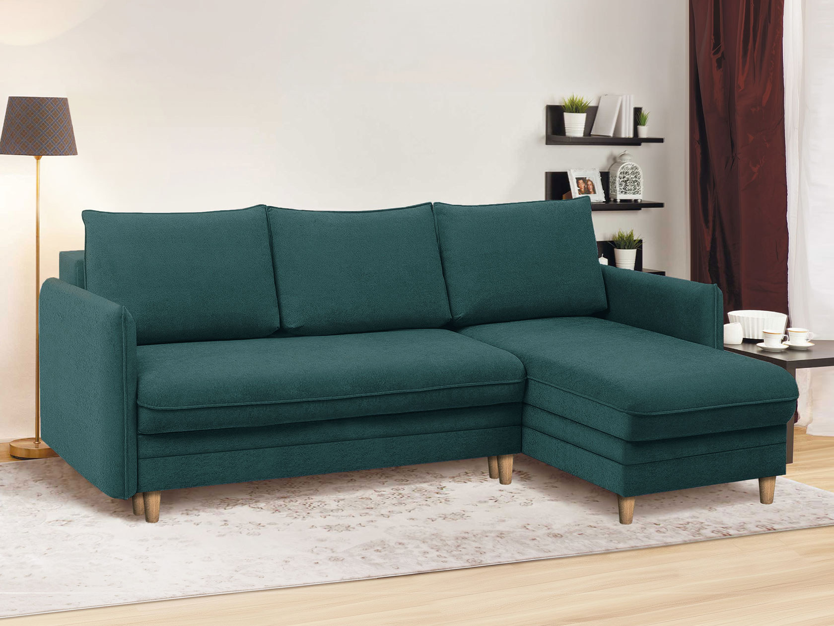 Угловой диван Остин Изумрудный, велюр Универсальное