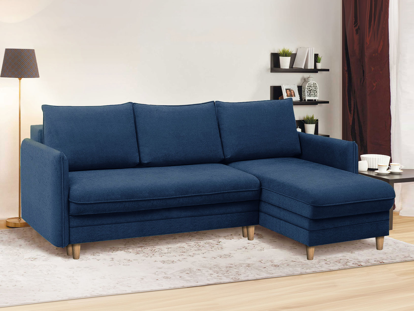 Угловой диван Остин Синий, велюр Универсальное