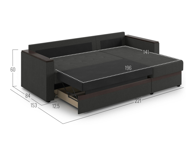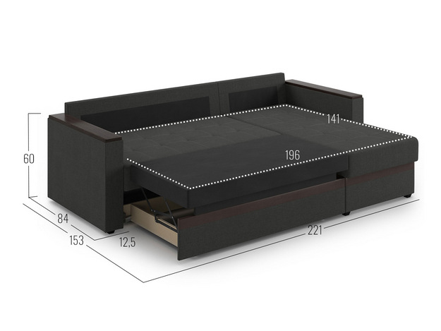 - Посадочное место без подушек (ШхГ): 196 х 74 см.
