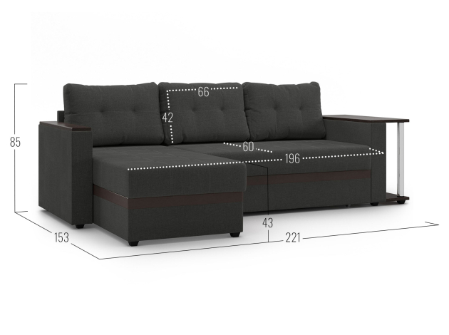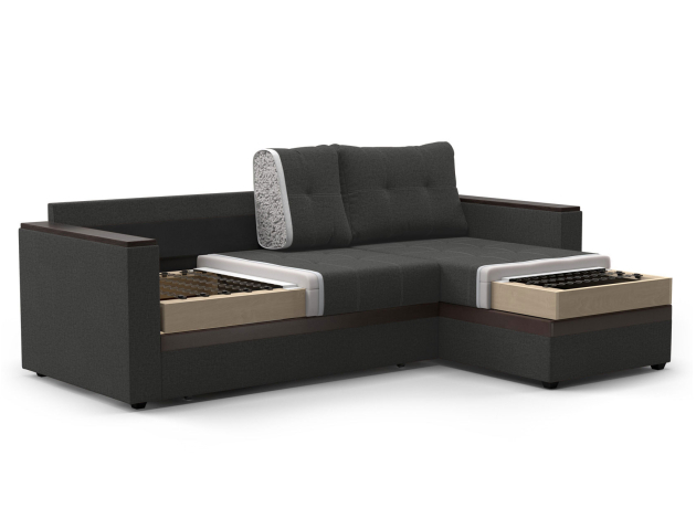 Угловой диван Атлантик — практичная модель для отдыха и ежедневного сна. Плотные удобные подушки позволяют комфортно устроиться на диване, отрегулировав глубину посадки. Благодаря съемным чехлам за ними очень просто ухаживать. Подлокотники с накладками можно использовать для пульта, смартфона и других мелочей.