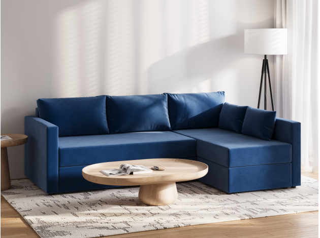 Угловой диван Камелия Синий, велюр Универсальное
