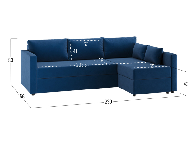 83 × 230 × 156 см