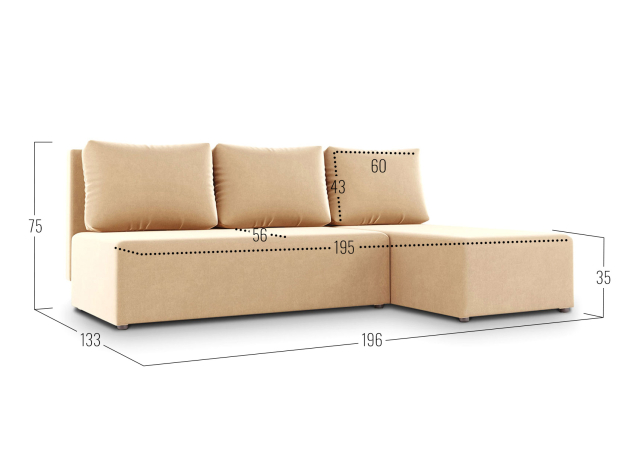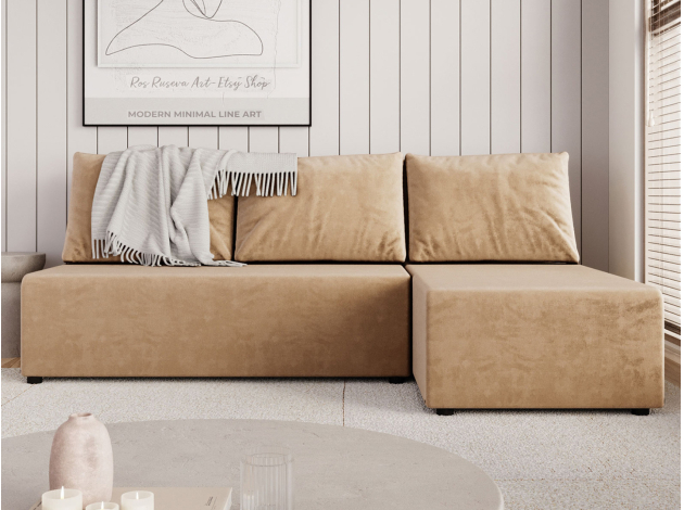 Угловой диван Комо Бежевый, искусственная замша Универсальное