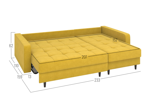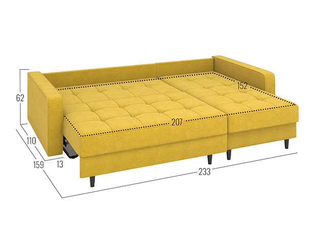 Угловой диван Санфорд станет отличным дополнением современного интерьера. Глубокое посадочное место, оптимальный угол наклона спинки и объемные подушки — детали, которые делают модель по-настоящему комфортной. Диван легко трансформируется для сна и складывается обратно, не повреждая напольное покрытие. В разложенном виде образуется полноценное спальное место, а для постельных принадлежностей предусмотрены два вместительных ящика: в оттоманке и основной секции.