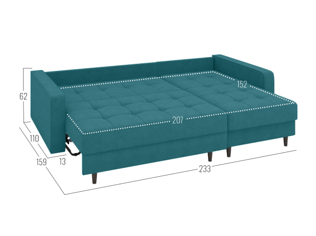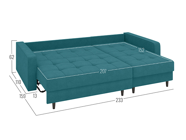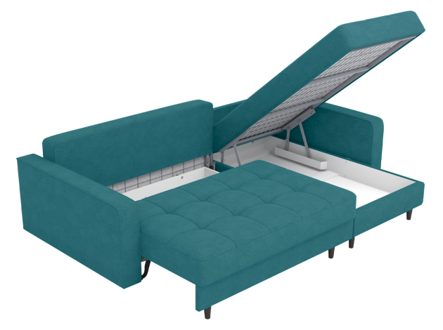 Угловой диван Санфорд станет отличным дополнением современного интерьера. Глубокое посадочное место, оптимальный угол наклона спинки и объемные подушки — детали, которые делают модель по-настоящему комфортной. Диван легко трансформируется для сна и складывается обратно, не повреждая напольное покрытие. В разложенном виде образуется полноценное спальное место, а для постельных принадлежностей предусмотрены два вместительных ящика: в оттоманке и основной секции.