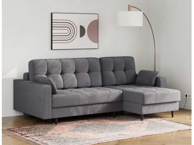 Угловой диван Санфорд станет отличным дополнением современного интерьера. Глубокое посадочное место, оптимальный угол наклона спинки и объемные подушки — детали, которые делают модель по-настоящему комфортной. Диван легко трансформируется для сна и складывается обратно, не повреждая напольное покрытие. В разложенном виде образуется полноценное спальное место, а для постельных принадлежностей предусмотрены два вместительных ящика: в оттоманке и основной секции.