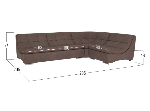 - Угловой диван: 77 х 111,5 х 111,5 см.