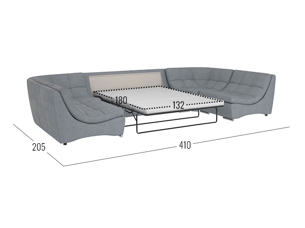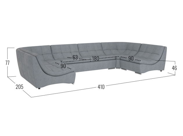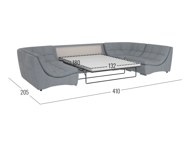 П-образный диван с креслами Сан-Диего Серо-голубой, рогожка Без механизма
