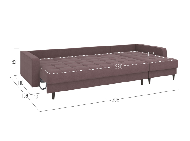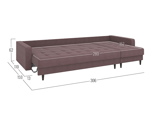 - Габариты ящика для белья в оттоманке (ВхШхГ): 13 х 142,5 х 72 см.