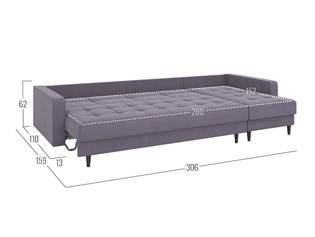 - Габариты ящика для белья в оттоманке (ВхШхГ): 13 х 142,5 х 72 см.