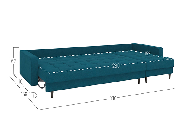 - Габариты ящика для белья в оттоманке (ВхШхГ): 13 х 142,5 х 72 см.