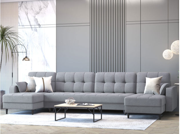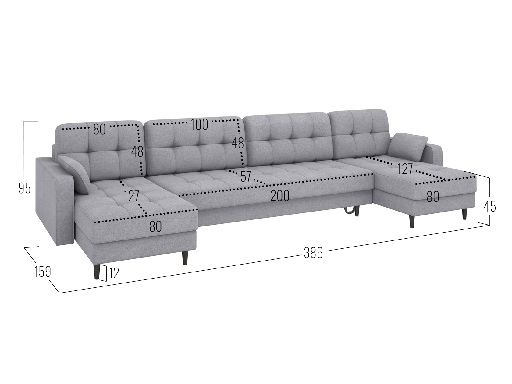 П-образный диван с оттоманками Санфорд Макси Серый, рогожка