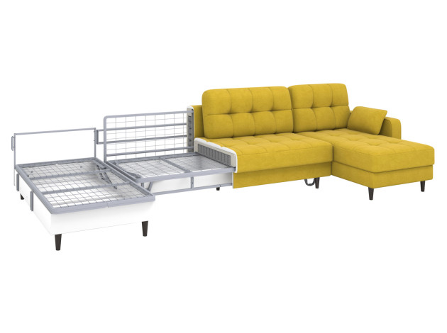 В разложенном виде образуется просторное спальное место. Матрас на основе пружинного блока создает оптимальную поддержку тела и подходит для ежедневного сна. Для постельных принадлежностей и других вещей предусмотрено несколько бельевых коробов. Убирать под диваном легко: под высокими ножками свободно проезжает робот-пылесос.
