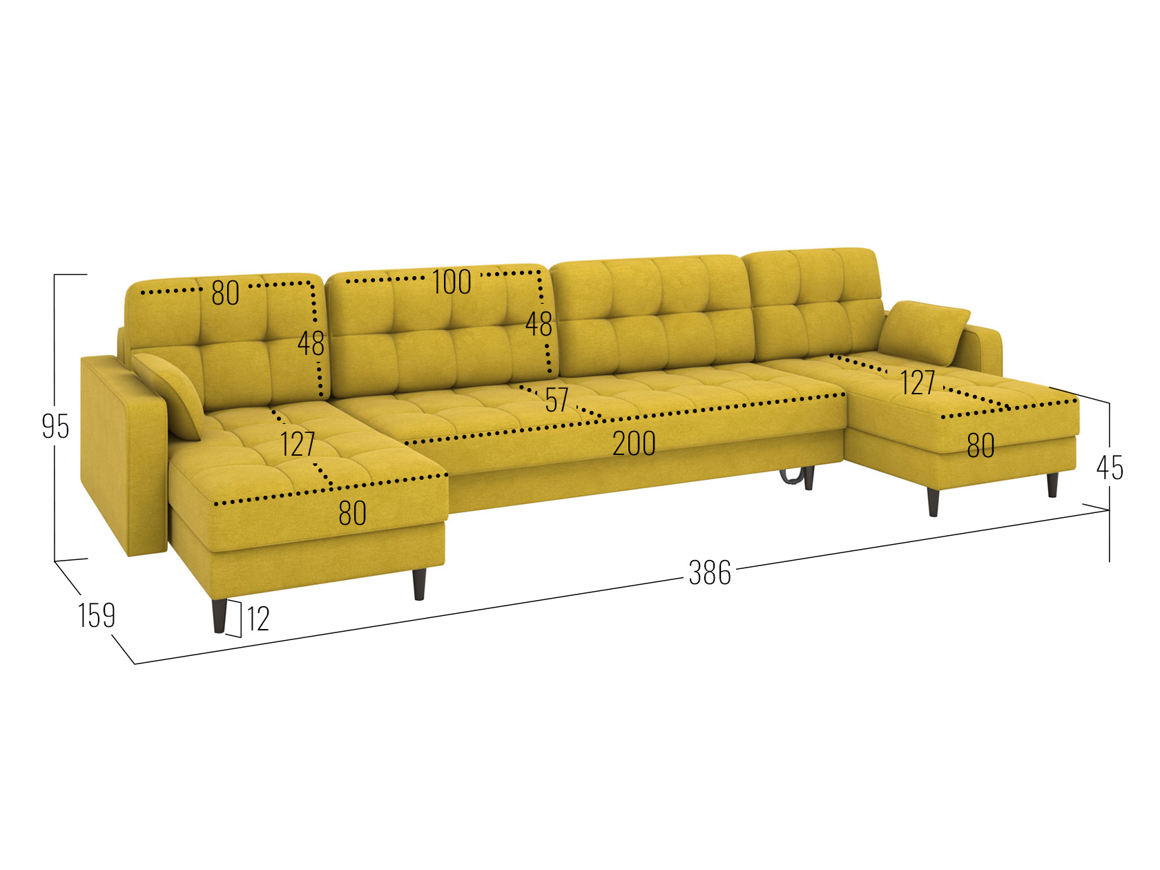 - Посадочное место без подушек (ШхГ): 360 х 82 см.