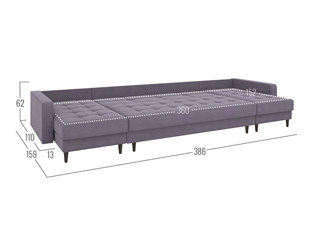 - Посадочное место без подушек (ШхГ): 360 х 82 см.