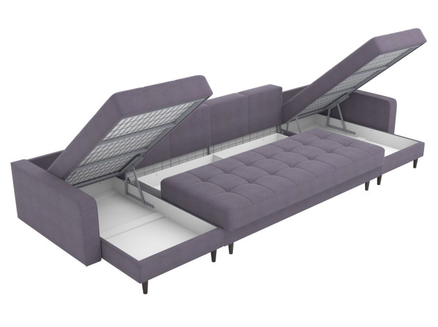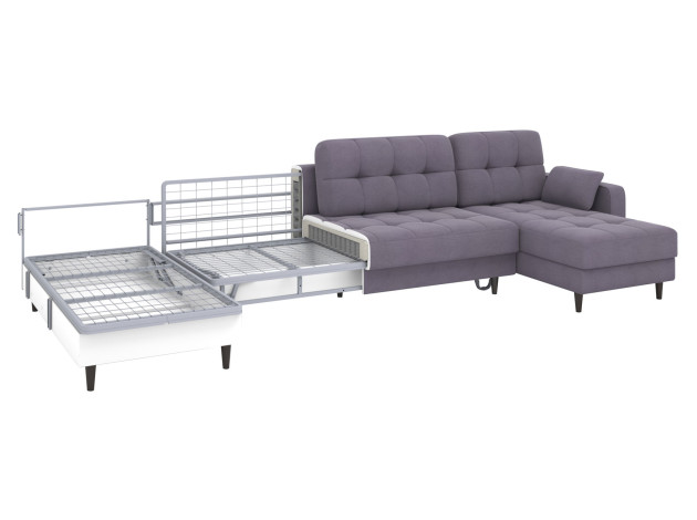 В разложенном виде образуется просторное спальное место. Матрас на основе пружинного блока создает оптимальную поддержку тела и подходит для ежедневного сна. Для постельных принадлежностей и других вещей предусмотрено несколько бельевых коробов. Убирать под диваном легко: под высокими ножками свободно проезжает робот-пылесос.