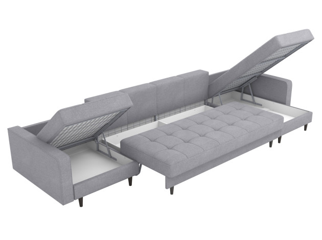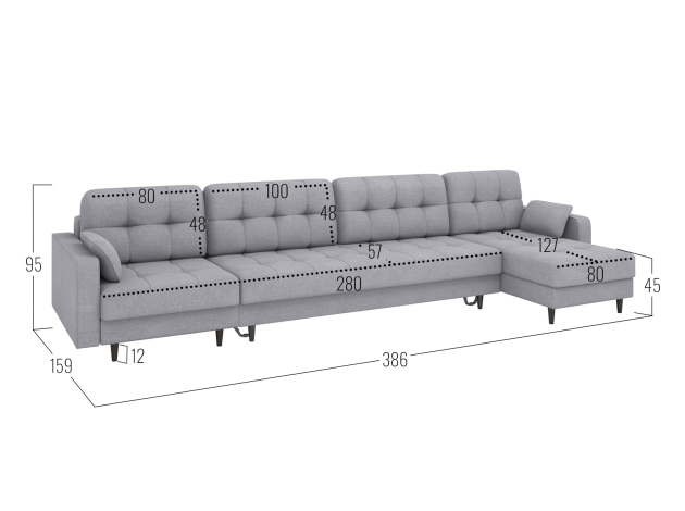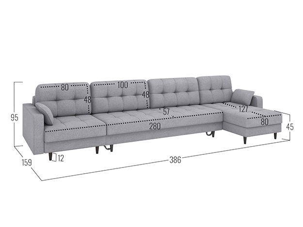 Угловой диван Санфорд Макси — комфортная и практичная модель для современной гостиной. Оттоманки позволяют расположиться полулежа, настроив удобную глубину посадки с помощью приспинных подушек. В разложенном виде диван превращается в просторную спальную зону.