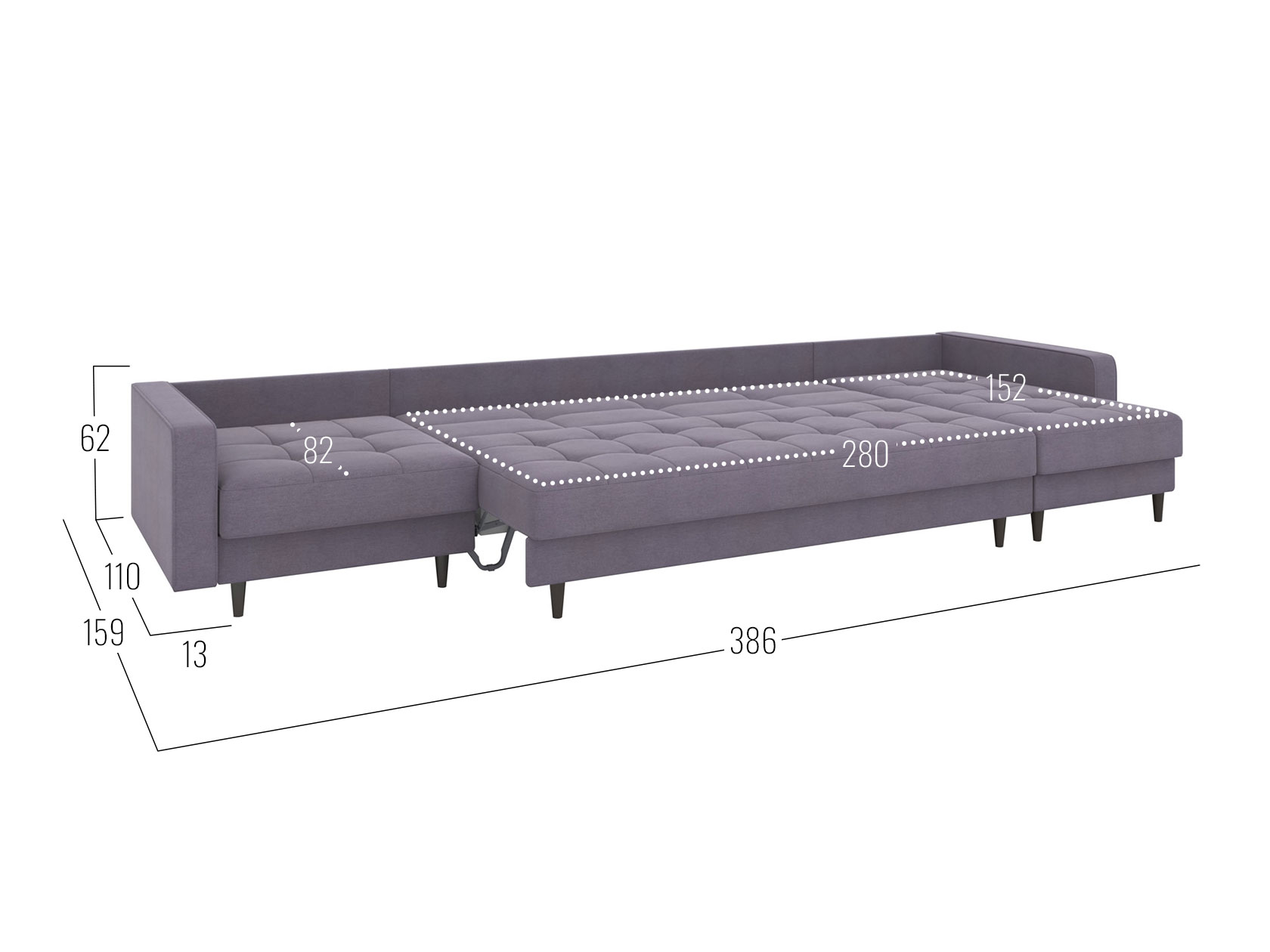 - Посадочное место без подушек (ШхГ): 360 х 82 см.