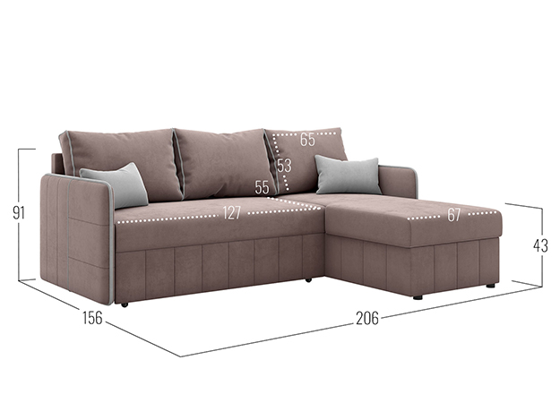 Угловая часть может располагаться как справа, так и слева. Это позволяет легко обновить интерьер и адаптировать диван к новому пространству.