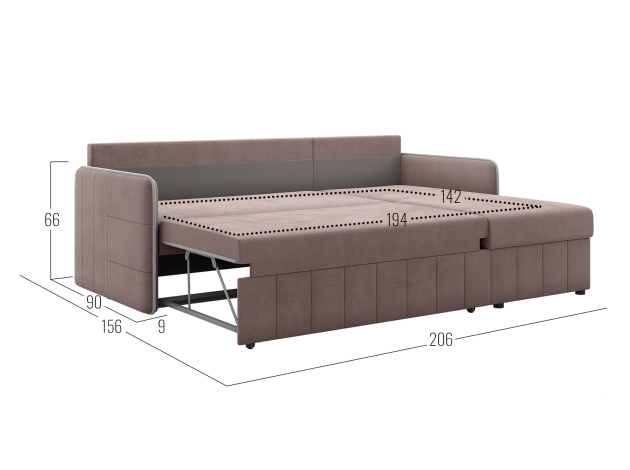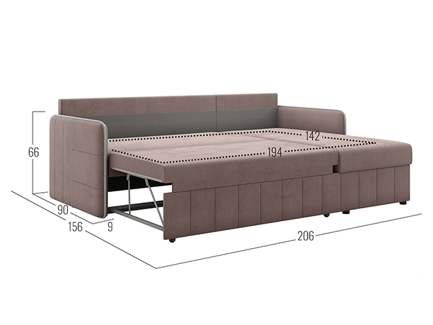 Прочный и устойчивый к нагрузкам механизм. Наиболее часто применяется в угловых диванах. Для трансформации нужно вытянуть из-под широкой части дополнительную секцию с подъемным механизмом и приподнять, чтобы она сравнялась с уровнем сиденья. Подходит для ежедневного использования.