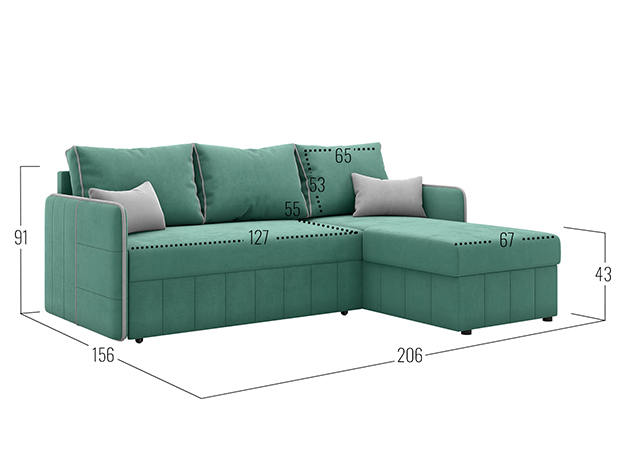 Угловая часть может располагаться как справа, так и слева. Это позволяет легко обновить интерьер и адаптировать диван к новому пространству.