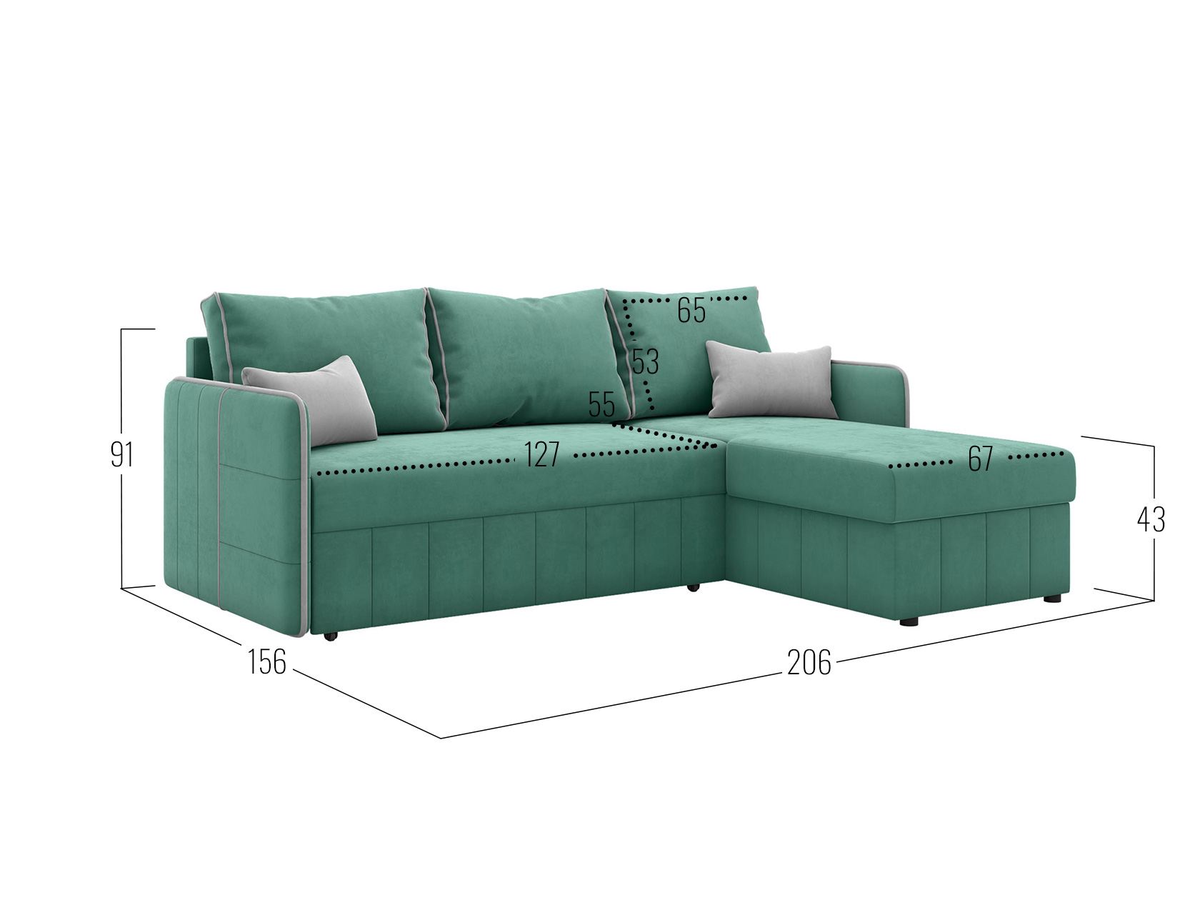 • Габариты (В × Ш × Г): 91 × 206 × 156 см