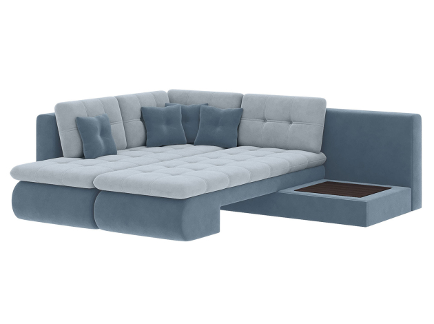 Модель оснащена инновационным поворотным механизмом, который за несколько секунд превращает угловой диван в двуспальную кровать. Высокое изголовье защищает от соприкосновения со стеной во время сна. После трансформации с одной стороны открывается удобный столик с термостойким покрытием. В неразложенном виде диван можно использовать в качестве комфортного спального места для одного человека.