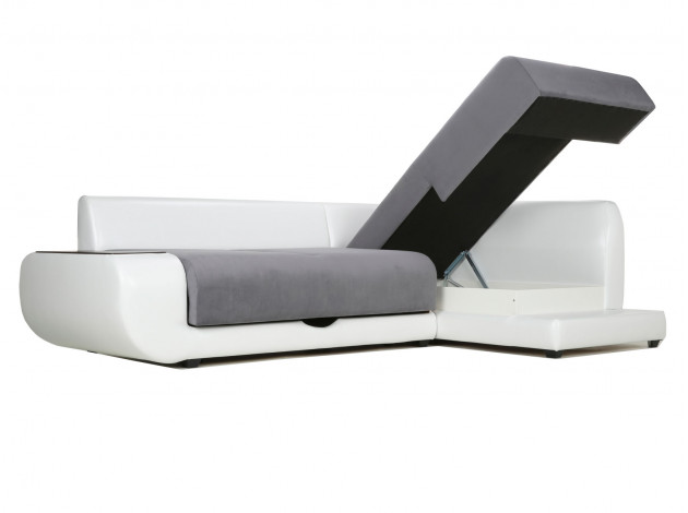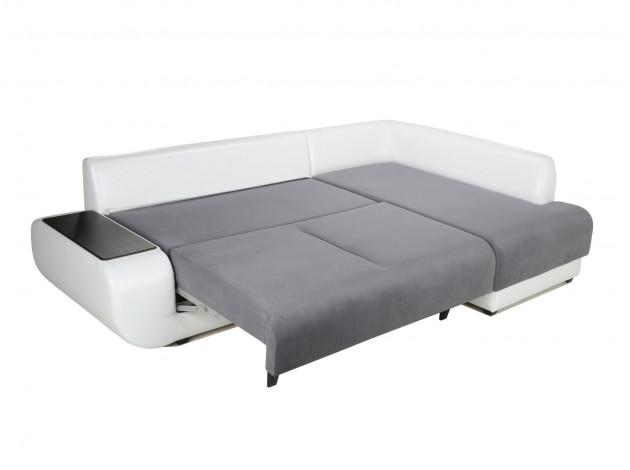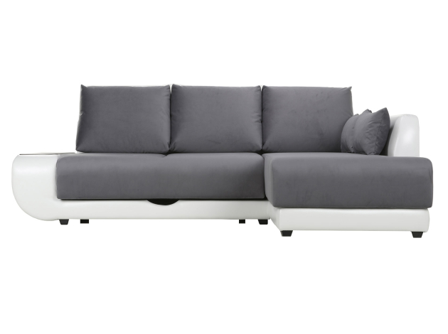 Угловой диван Стингер Графитово-белый, велюр/кожзам С баром Пенополиуретан Справа