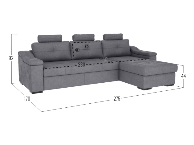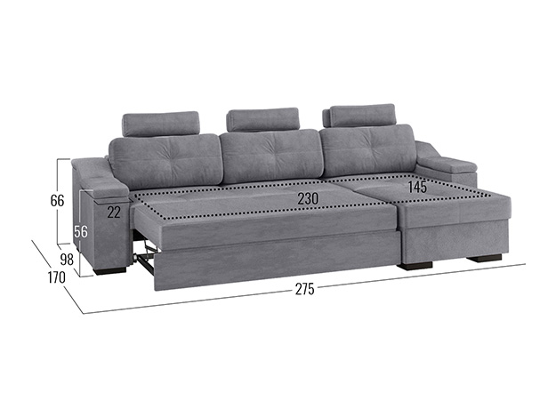 Угловой диван Триумф с оттоманкой сочетает современный стиль и функциональность. Модель подходит для приятного отдыха в течение дня, а ночью легко превращается в удобную кровать. Объемные подушки, широкие подлокотники и регулируемые по высоте подголовники позволят с максимальным комфортом наслаждаться любимым сериалом, даже если просмотр растянется надолго. Диван идеально подходит для зонирования: его можно поставить в любой части комнаты. Благодаря подъемному механизму осуществляется быстрый доступ к бельевому коробу, который находится в оттоманке.