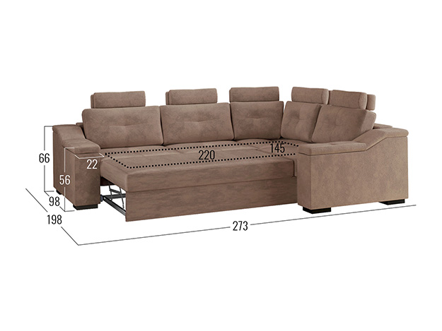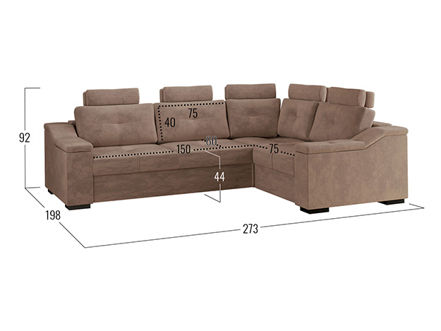 Просторный угловой диван Триумф с широкими подлокотниками создан для максимально комфортного отдыха с семьей или в компании друзей. Объемные подушки оснащены регулируемыми подголовниками, чтобы каждый сидящий мог настроить удобные высоту и угол наклона. При необходимости модель превращается в двуспальную кровать с ящиком для белья.