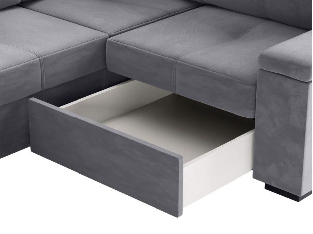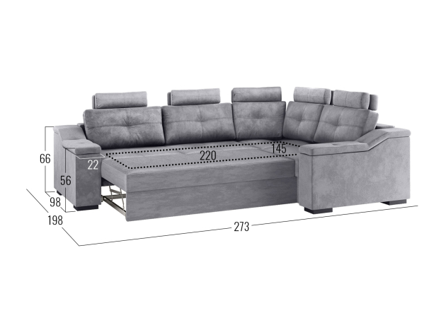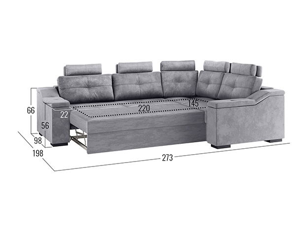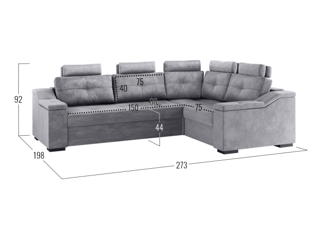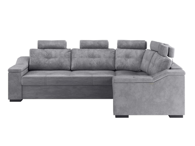 Просторный угловой диван Триумф с широкими подлокотниками создан для максимально комфортного отдыха с семьей или в компании друзей. Объемные подушки оснащены регулируемыми подголовниками, чтобы каждый сидящий мог настроить удобные высоту и угол наклона. При необходимости модель превращается в двуспальную кровать с ящиком для белья.