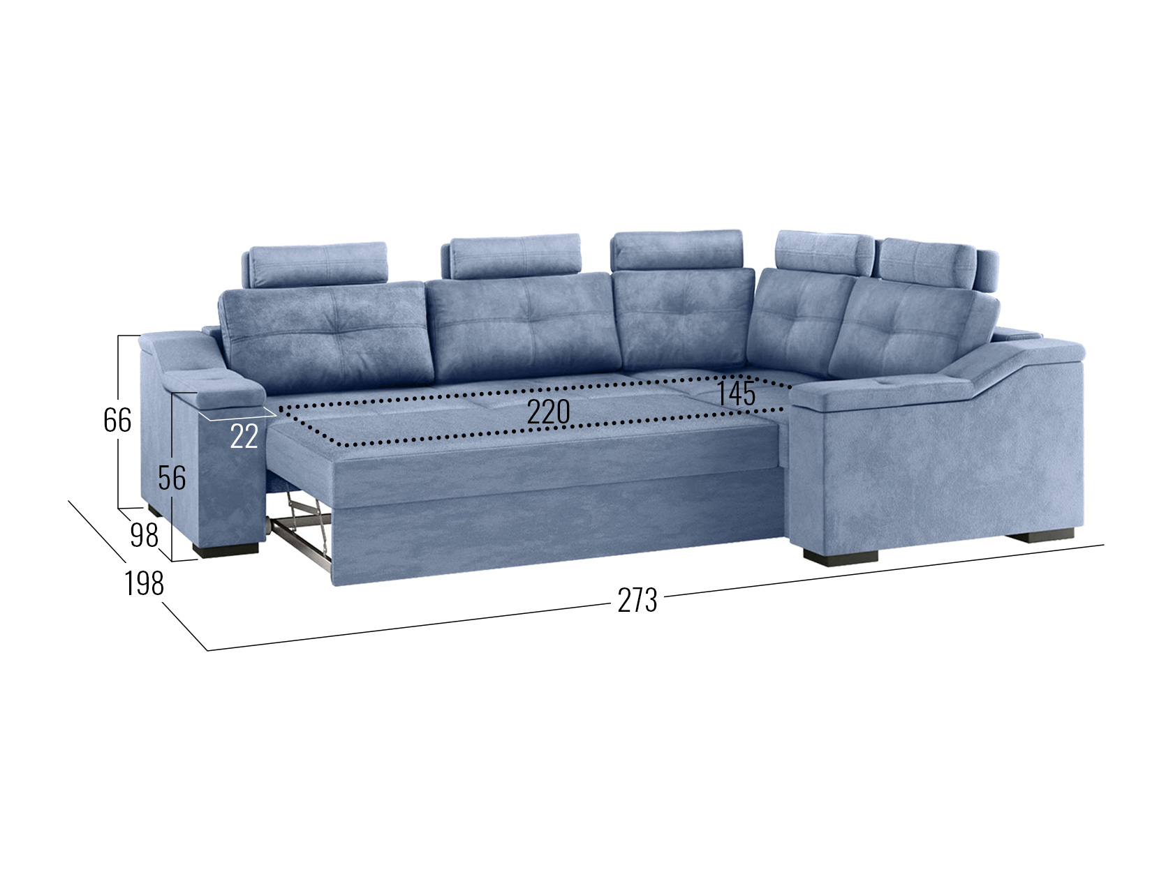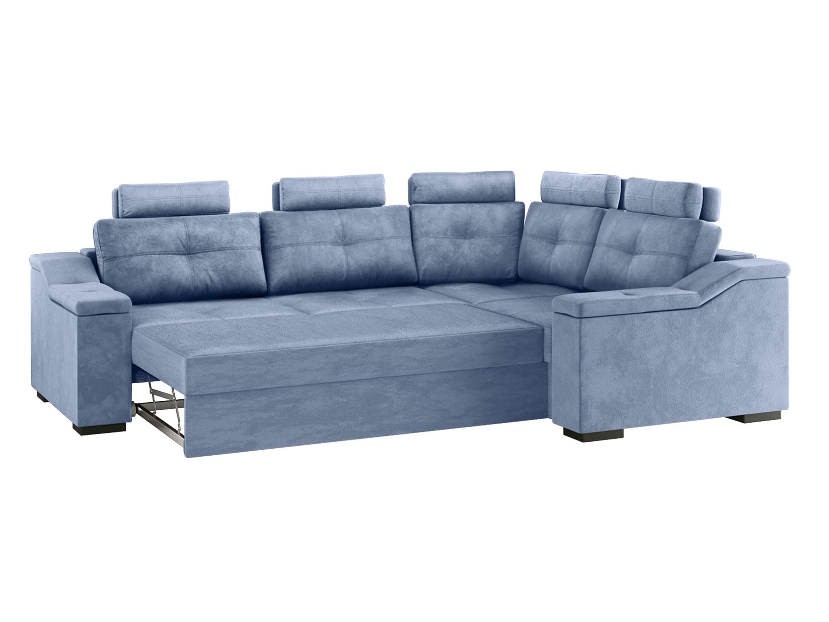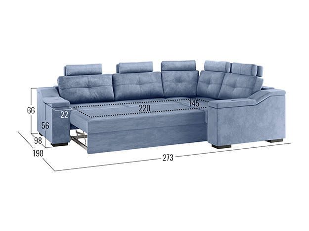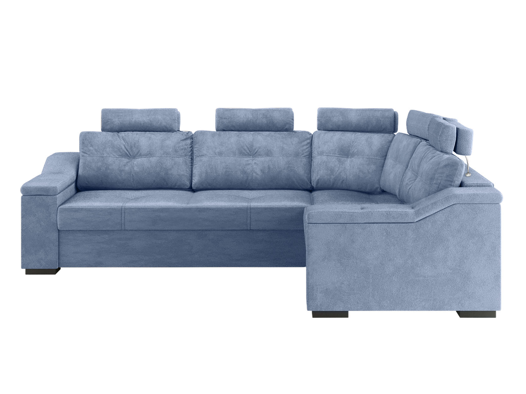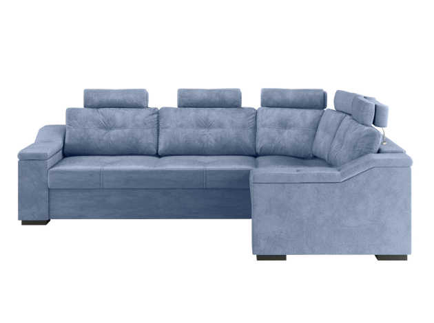 Просторный угловой диван Триумф с широкими подлокотниками создан для максимально комфортного отдыха с семьей или в компании друзей. Объемные подушки оснащены регулируемыми подголовниками, чтобы каждый сидящий мог настроить удобные высоту и угол наклона. При необходимости модель превращается в двуспальную кровать с ящиком для белья.