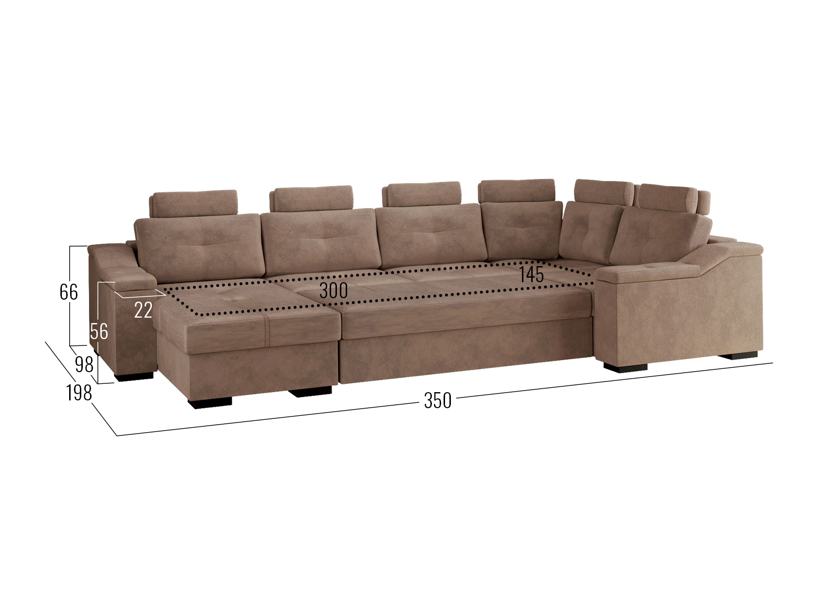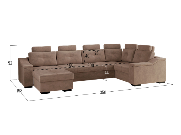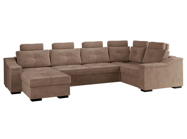 Комфортабельный П-образный диван комби Триумф займет особое место в интерьере гостиной. Шесть объемных подушек оснащены индивидуальными регулируемыми подголовниками, чтобы обеспечить персональный комфорт для каждого сидящего. Диван легко трансформируется в двуспальную кровать, при этом для хранения постельных принадлежностей есть два бельевых ящика, один из которых оснащен подъемным механизмом. Модель может использоваться для зонирования пространства.