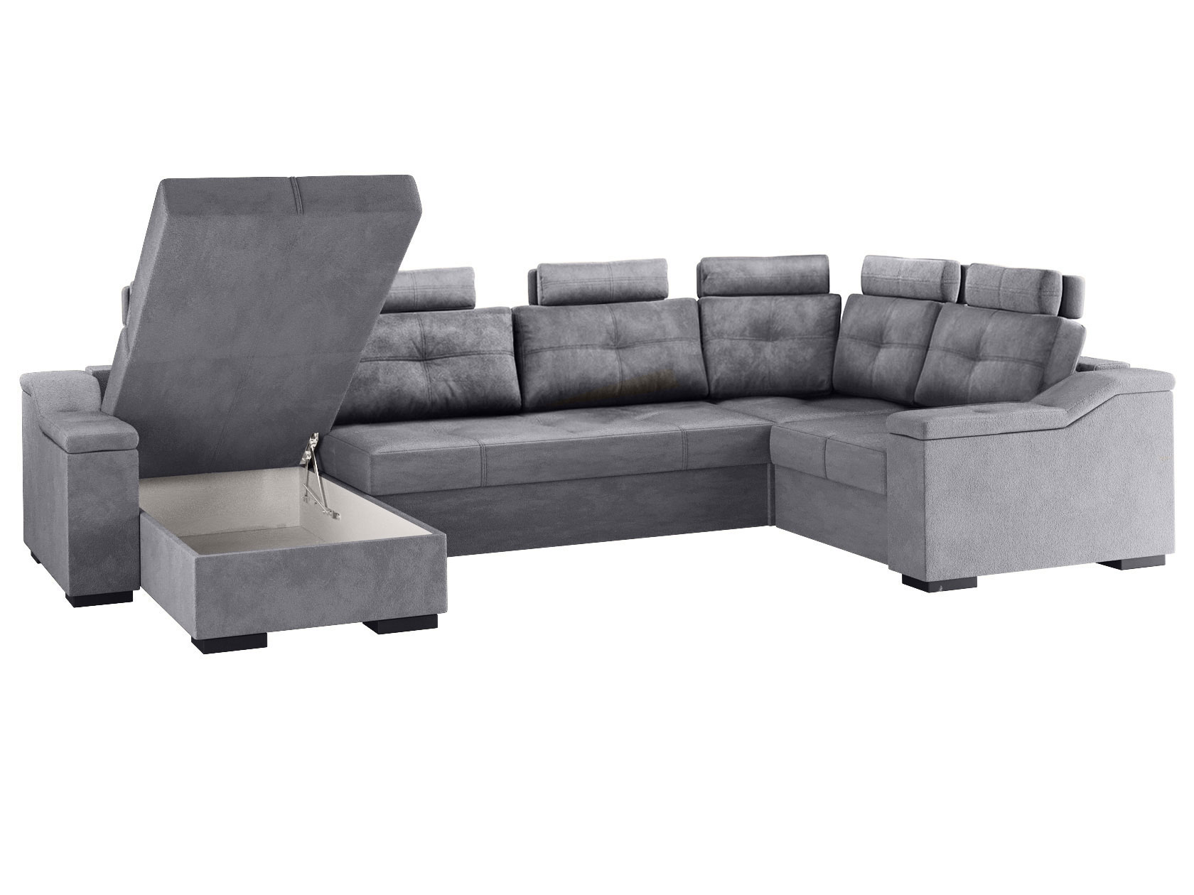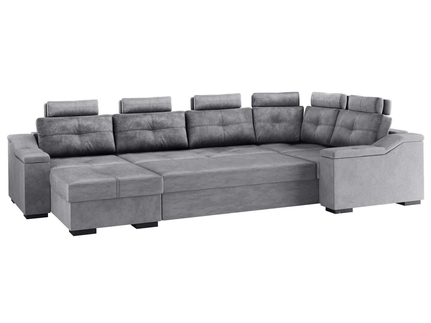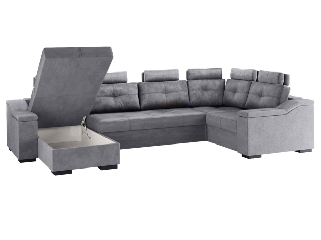 Комфортабельный П-образный диван комби Триумф займет особое место в интерьере гостиной. Шесть объемных подушек оснащены индивидуальными регулируемыми подголовниками, чтобы обеспечить персональный комфорт для каждого сидящего. Диван легко трансформируется в двуспальную кровать, при этом для хранения постельных принадлежностей есть два бельевых ящика, один из которых оснащен подъемным механизмом. Модель может использоваться для зонирования пространства.