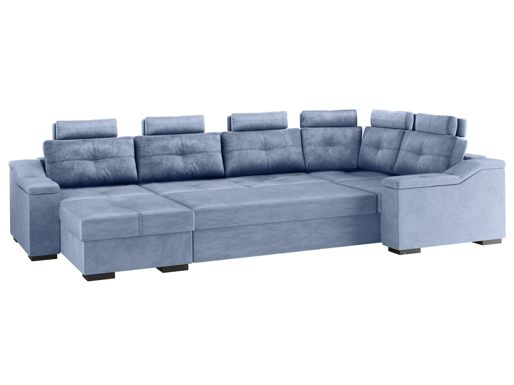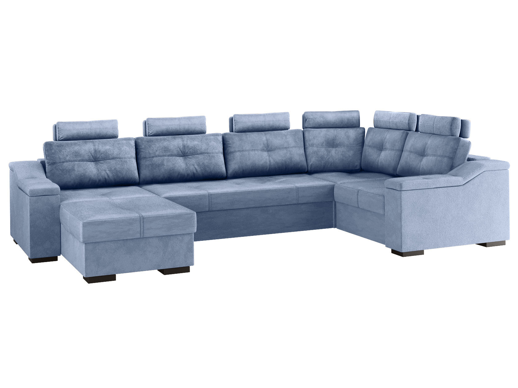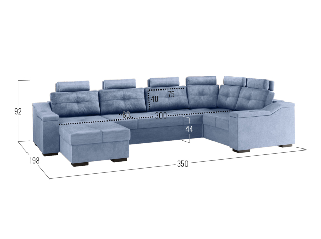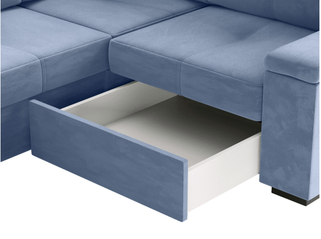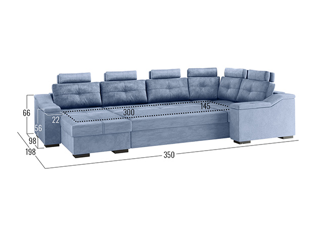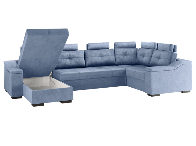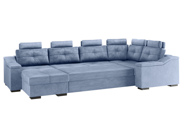 Комфортабельный П-образный диван комби Триумф займет особое место в интерьере гостиной. Шесть объемных подушек оснащены индивидуальными регулируемыми подголовниками, чтобы обеспечить персональный комфорт для каждого сидящего. Диван легко трансформируется в двуспальную кровать, при этом для хранения постельных принадлежностей есть два бельевых ящика, один из которых оснащен подъемным механизмом. Модель может использоваться для зонирования пространства.