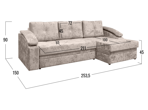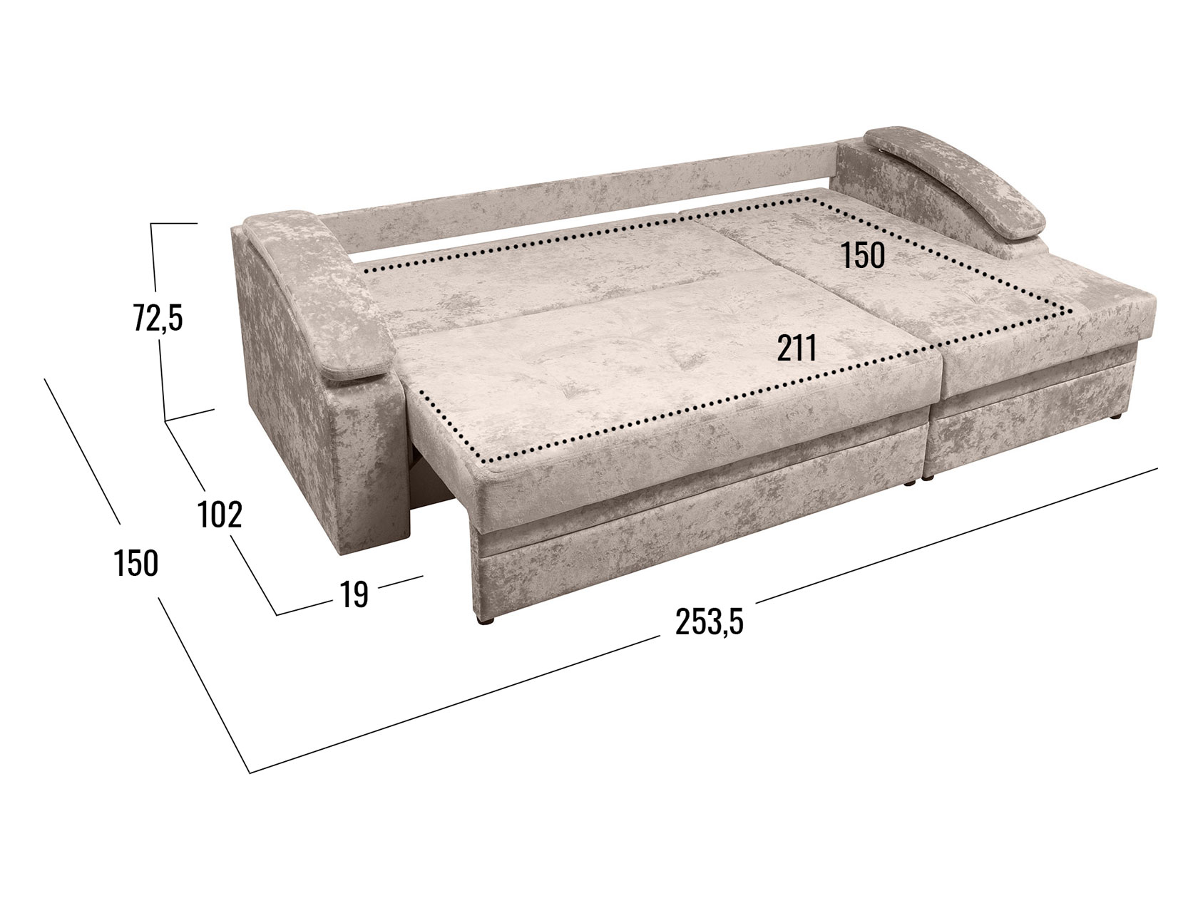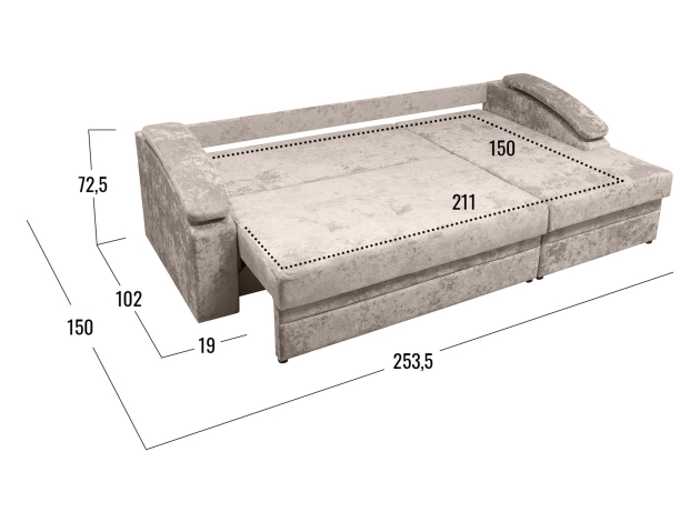 - Посадочное место без подушек (ШхГ): 211 х 80 см.