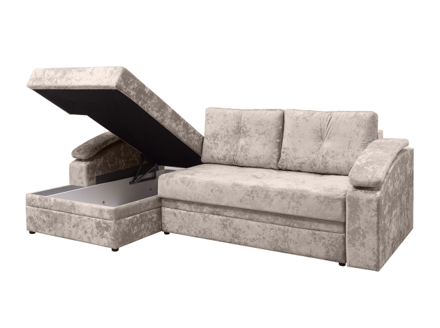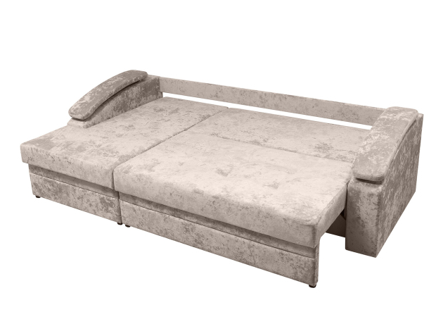 Важное преимущество дивана — возможность быстрой трансформации в полноценное спальное место. В основании и оттоманке предусмотрены коробы для постельного белья, запасных одеял, подушек или пледов.