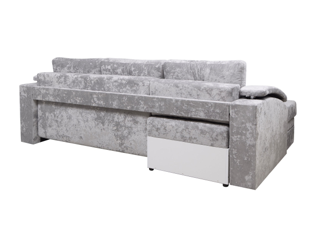 Важное преимущество дивана — возможность быстрой трансформации в полноценное спальное место. В основании и оттоманке предусмотрены коробы для постельного белья, запасных одеял, подушек или пледов.