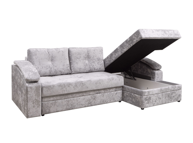 Важное преимущество дивана — возможность быстрой трансформации в полноценное спальное место. В основании и оттоманке предусмотрены коробы для постельного белья, запасных одеял, подушек или пледов.