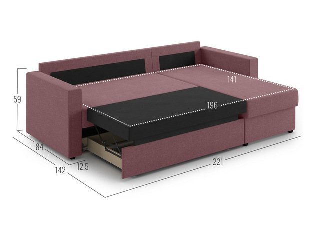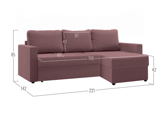 Практичный трехместный угловой диван Фишер с большими плотными подушками отличается надежностью и долговечностью, что делает его хорошим вариантом для ежедневного использования. Модель отлично подойдет для интерьера квартиры-студии или небольшой комнаты. Высокая спинка защищает от соприкосновения со стеной когда диван разложен для сна.
