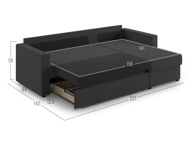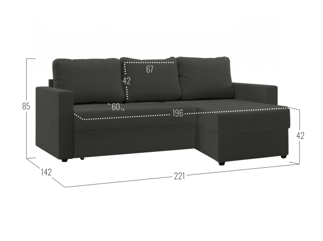 Практичный трехместный угловой диван Фишер с большими плотными подушками отличается надежностью и долговечностью, что делает его хорошим вариантом для ежедневного использования. Модель отлично подойдет для интерьера квартиры-студии или небольшой комнаты. Высокая спинка защищает от соприкосновения со стеной когда диван разложен для сна.