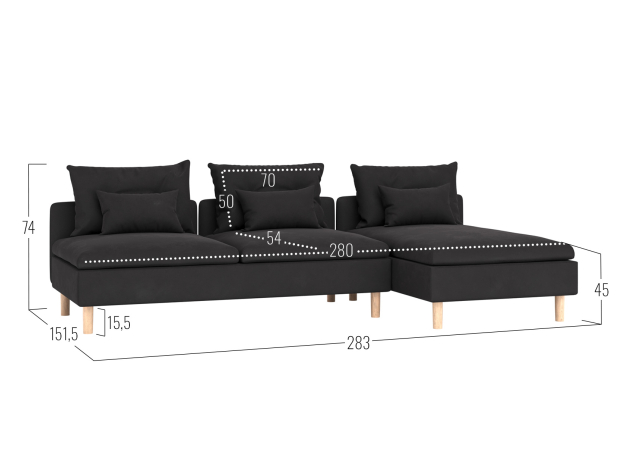 Угловой диван Калисто с оттоманкой Графит, велюр Универсальное