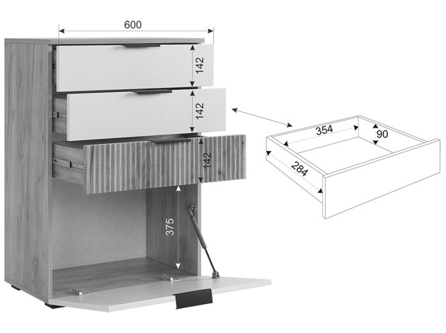 - Внутренний размер ящика (ВхШхГ): 9 х 35,4 х 28,4 см.