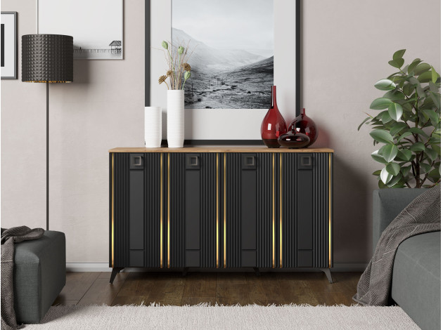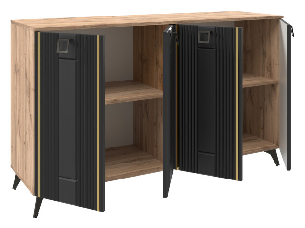 Комод Акс в изысканном исполнении станет эффектным акцентом любого интерьера. Внутреннее наполнение представлено двумя отделениями с полками за распашными дверцами, которые помогут аккуратно хранить сложенную одежду, постельное белье и личные вещи. Дверцы оснащены петлями с доводчиками, что позволит избежать хлопков и резкого закрывания, значительно увеличивая срок эксплуатации. Фасады украшены декоративной фрезеровкой. Высокие опоры упростят уборку в помещении.