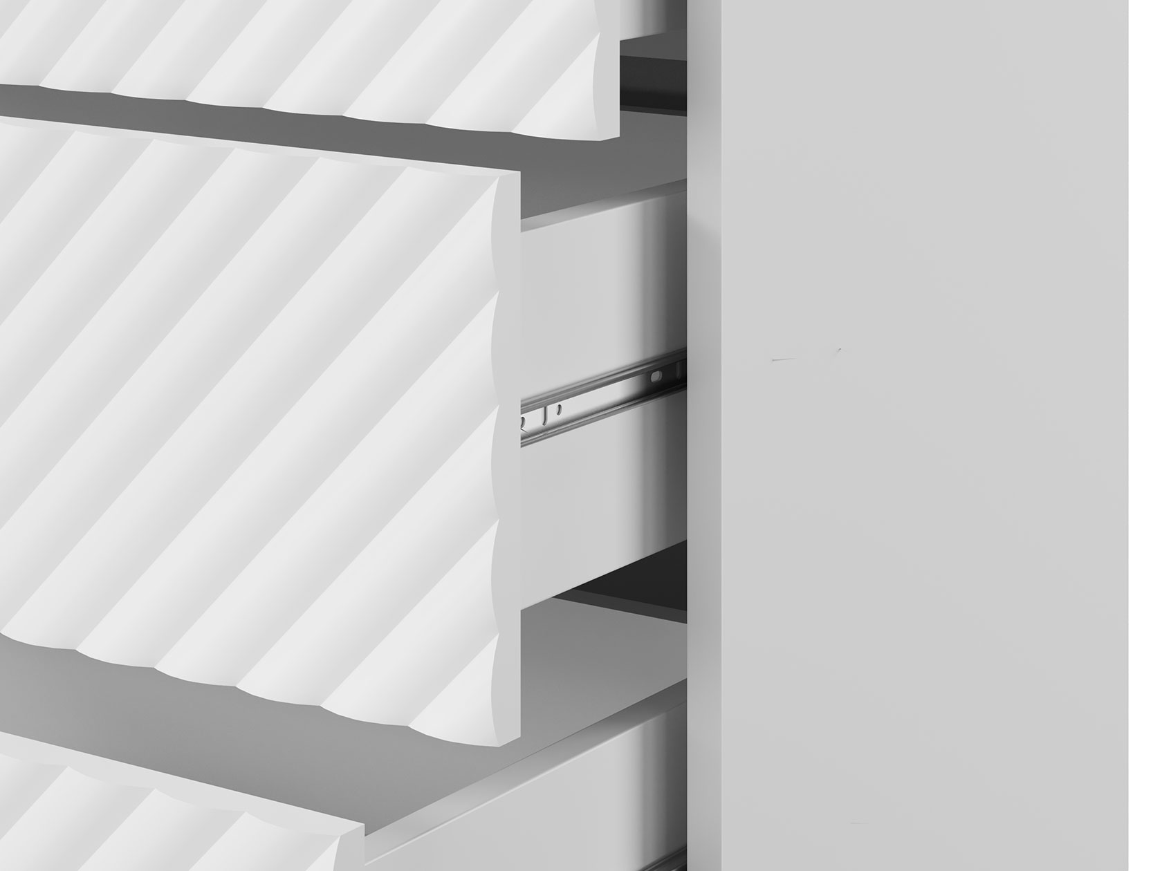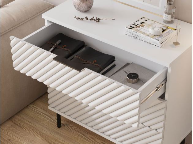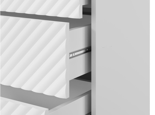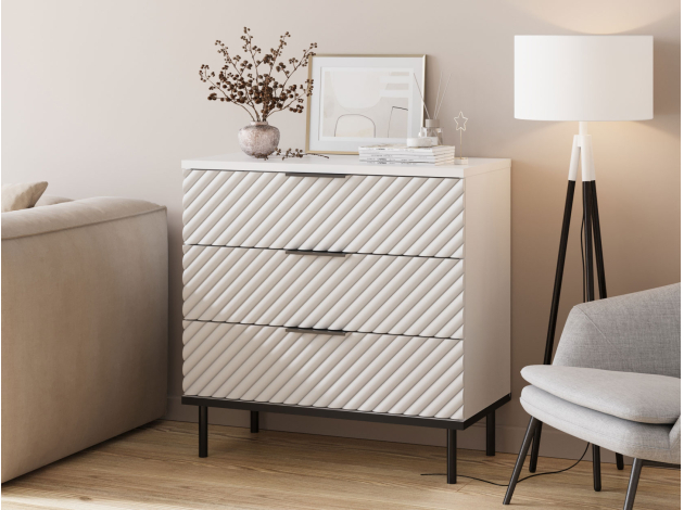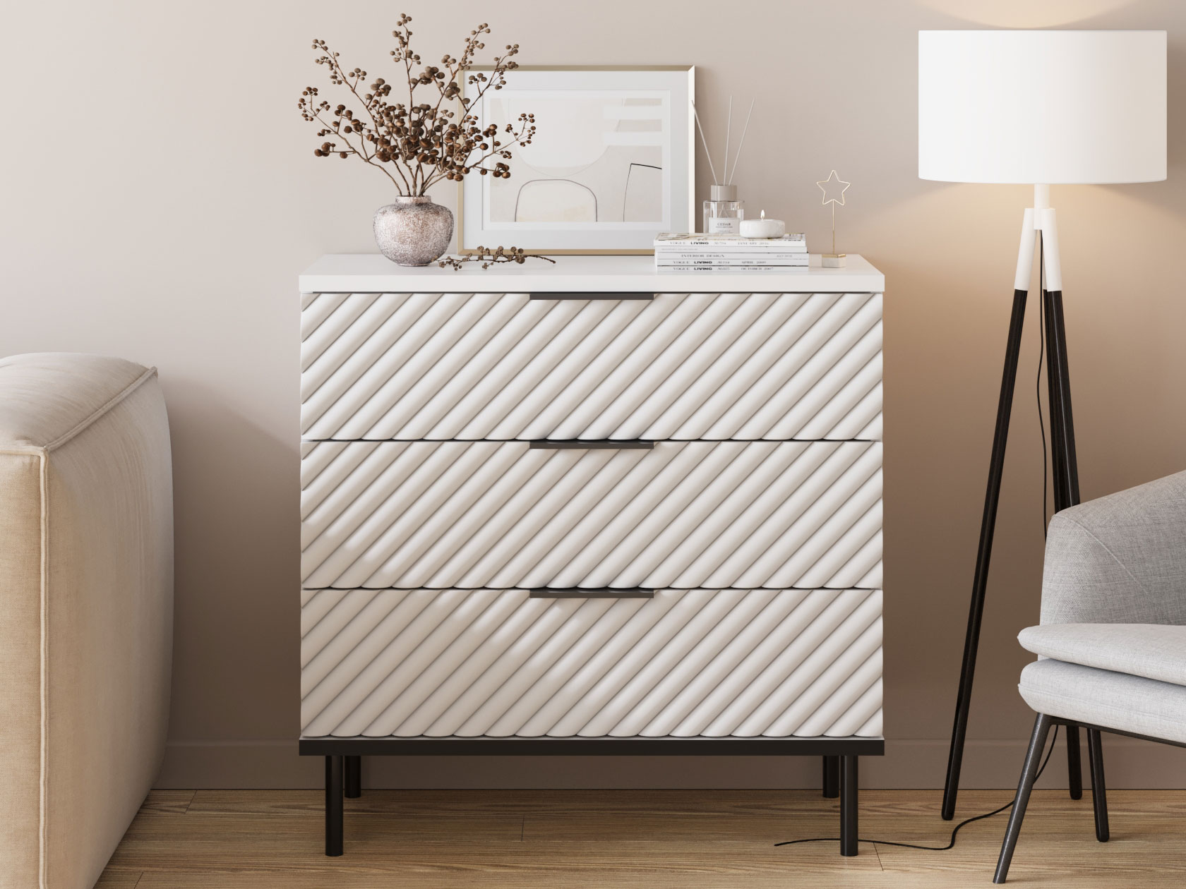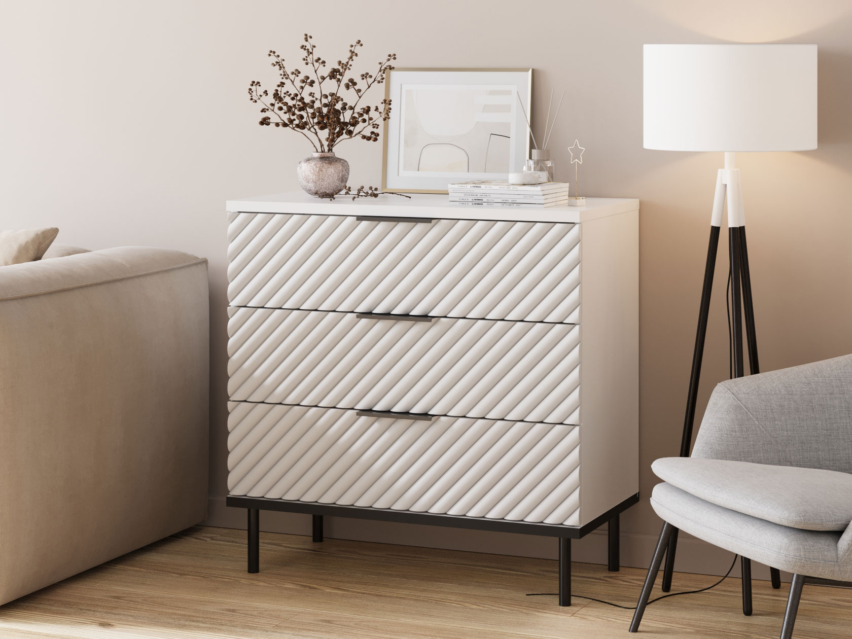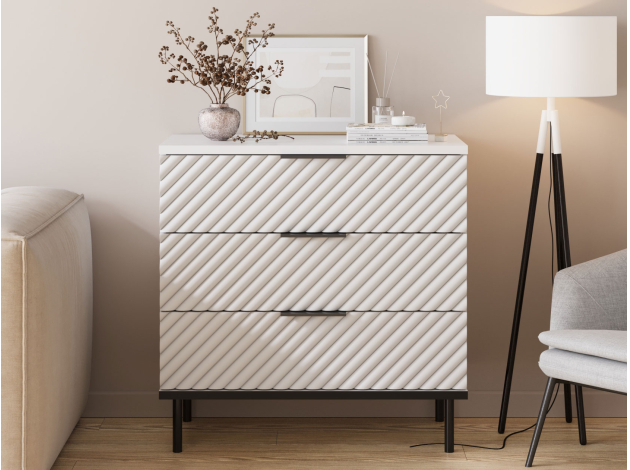 Комод Алегра станет одной из фокусных точек интерьера. Эффектные фасады в сочетании с контрастными акцентами создают стильный и динамичный образ модели. Выдвижные ящики помогут упорядочить хранение в спальне, гостиной или прихожей. У комода высокие опоры, а значит, под ним легко проводить уборку.