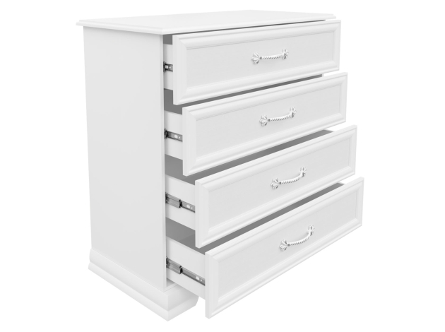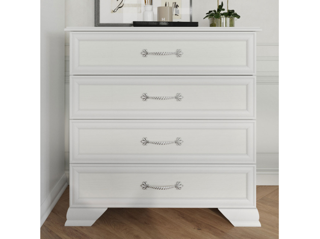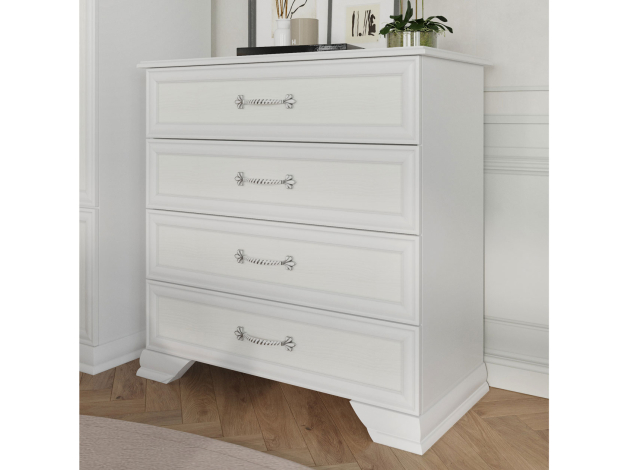 Комод Азалия станет прекрасным дополнением классического интерьера. Изысканный силуэт модели подчеркивают рамочные фасады и изящные ручки. Выдвижные ящики позволяют оптимально распределить содержимое и легко находить нужную вещь.