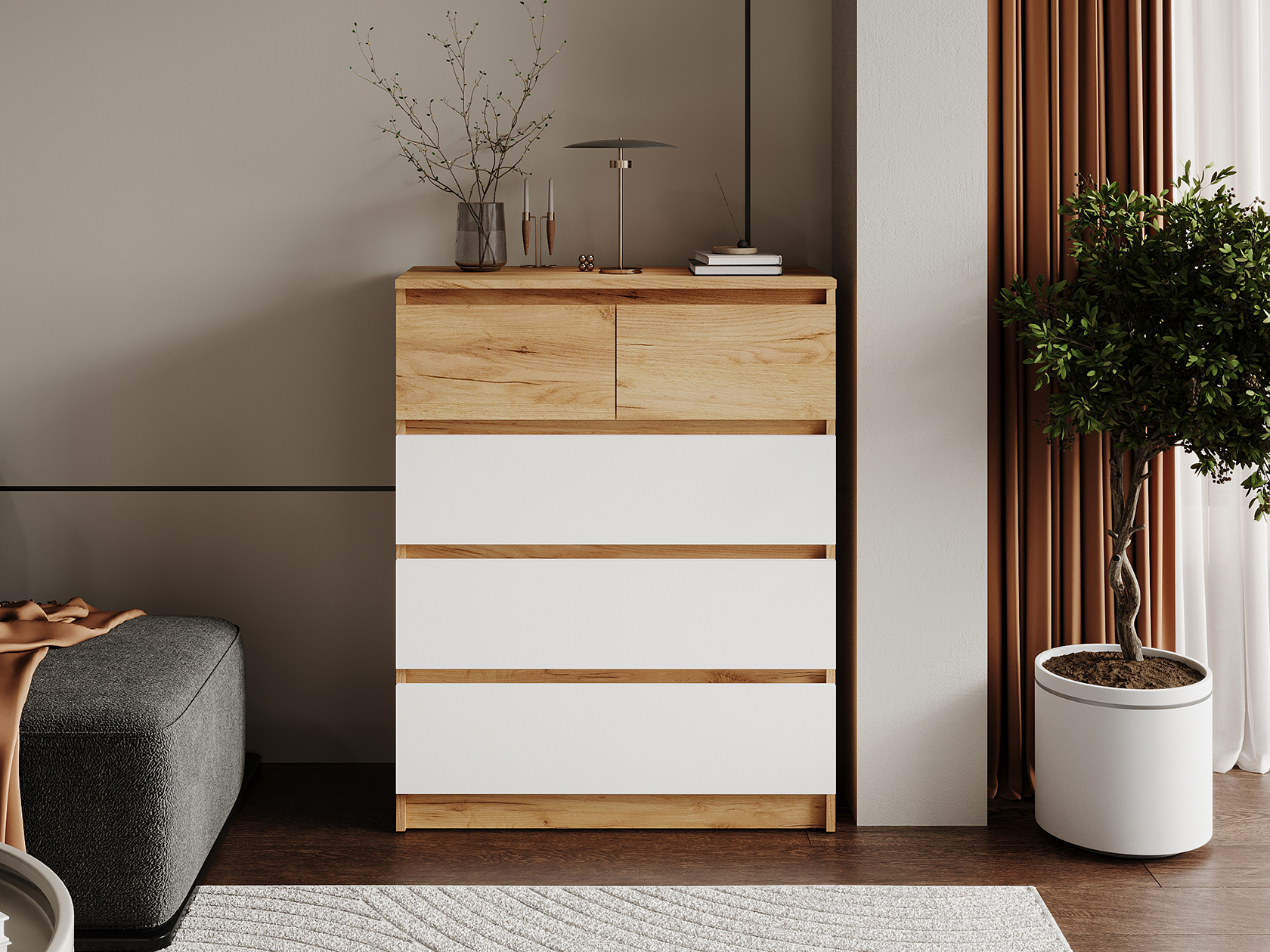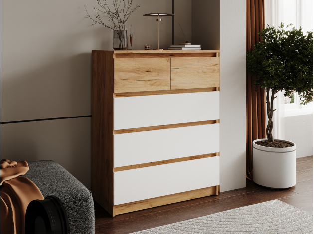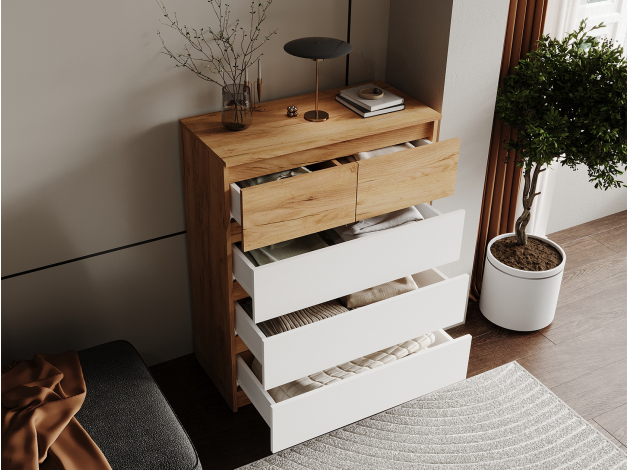 Комод Бостон Лайт Миди отлично подойдет для меблировки современного интерьера. Пространство внутри поделено на секции разного размера, что позволяет сортировать одежду от более крупных предметов к мелким. Благодаря направляющим ящики двигаются плавно и бесшумно, выдвигаясь на полную глубину и обеспечивая удобный доступ к содержимому.